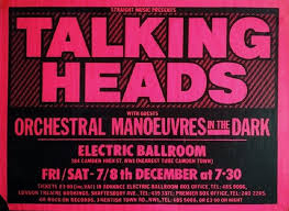 I was at the Electric Ballroom in Camden, London on Saturday December 8, 1979, (I had to look up the date). This was the first night of two at the venue at the end of the Talking Heads’ ‘Fear of Music’ UK tour, the support act were Orchestral Manoeuvres in the Dark. I went to the gig with my sister Jane and Chris, her boyfriend at the time. I was excited to see the band perform what for me was one of the most interesting albums of the year. I had seen them perform twice previously in the USA.