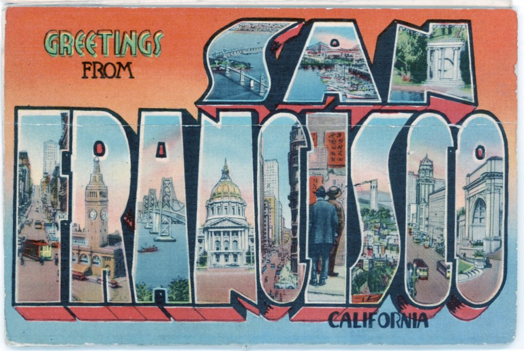 Our silver Chevy rattled along Highway 1 past Half Moon Bay, Pacifica and we eventually entered the suburbs of Daly City and the southern approaches to the city. There was signs appearing for the 49 Mile Drive, I wondered at the time what it was. (I drove the whole route later). We excitedly drove right into the centre of downtown San Francisco and headed for the Main Post Office somewhere on or off Market Street, narrowly avoiding the suddenly confusing input of trams, cable cars and buses. We collected a few forwarded letters there from family in the UK. I learnt that my theatrical Uncle Alfred had died in Manchester sometime over the summer.